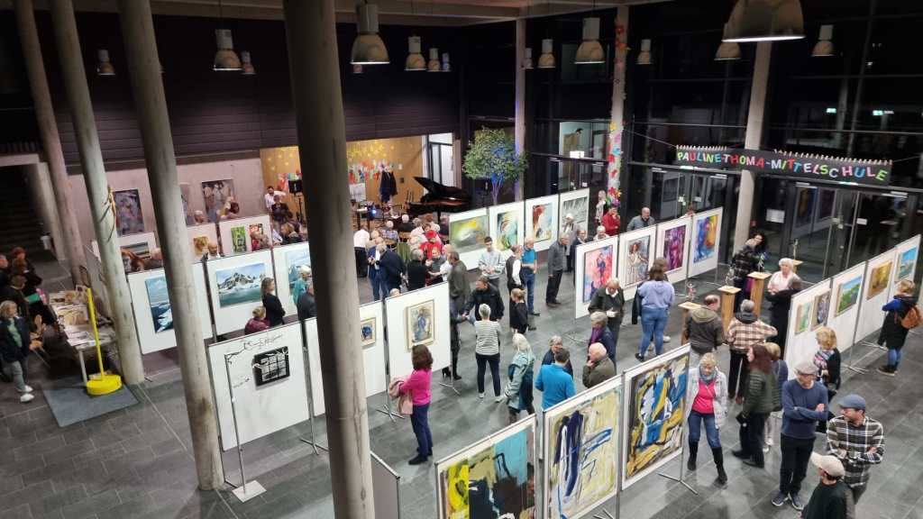 mit dynamischer Pinselführung, Gerd Brosch mit seinen mehrfarbigen Druckgrafiken und Hildegard Czizegg mit abstrahierten Landschaften in Acryl.Hanni Harzenetter ließ sich von der umgebenden Natur zu Farbkompositionen mit feinen zeichnerischen Komponenten inspirieren; Meise Inninger zeigt Zeichnungen und Arbeiten in Pastellkreide, Sabine Koschier mit geometrischen Mustern verwobene Tierporträts, Jens Lerner hyperrealistische Bleistiftzeichnungen und Resi Pramböck großformatige abstrakte Acrylbilder. Von Brigitte Schindler werden Aquarelle mit floralen Motiven, von Penny Seitz-Würdemann farbenfrohe Acrylmalerei, von Loz Verney ausdrucksstarke Ölbilder, in denen er den Menschen in einer Symbiose mit seiner Umgebung darstellt und von Erich Wagner Motive unserer Heimat in kubistischer Interpretation zu sehen sein.